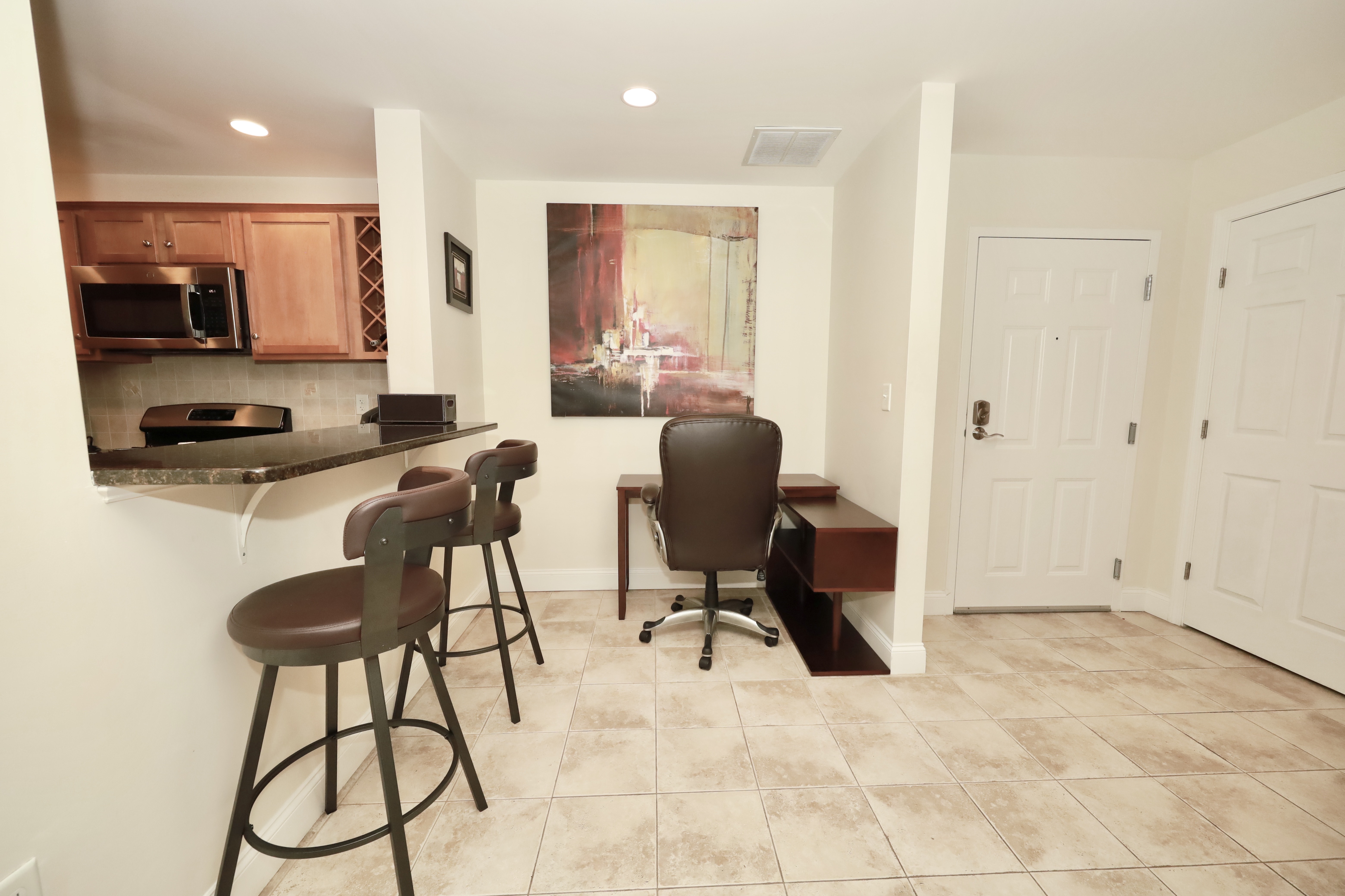 This beautifully furnished condo features two sizable bedrooms, one with a king bed and the other with a queen, each boasting a private bathroom. Enjo... This beautifully furnished condo features two sizable bedrooms, one with a king bed and the other with a queen, each boasting a private bathroom. Enjoy the elegance of hardwood floors throughout and a modern kitchen with granite countertops and stainless steel appliances. The spacious common area is perfect for entertaining. Located in a professionally managed building, this unit also includes two assigned parking spaces for your convenience.